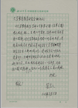 著名历史学家、西北大学名誉校长张岂之先生2013年7月15日专门给大学素质教育研究会秘书处写来了表扬信,如下: