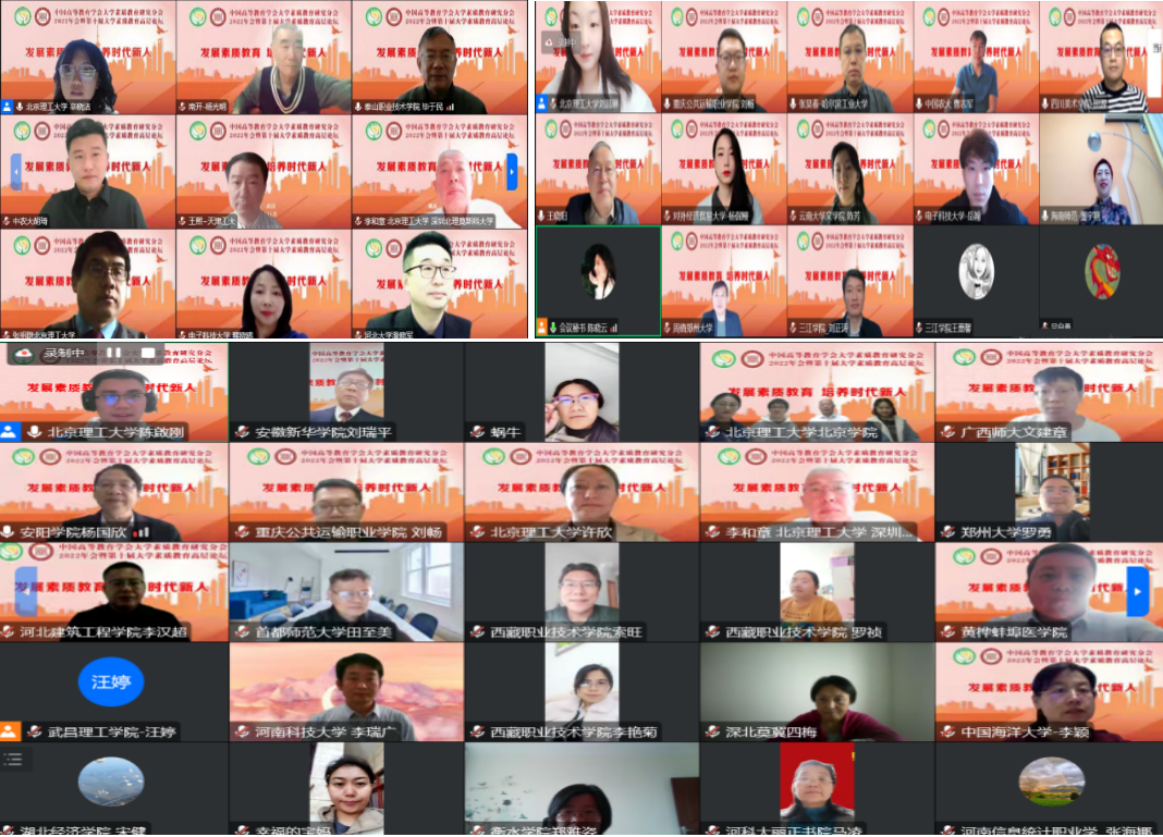 2022年11月4日至6日,由中国高等教育学会大学素质教育研究分会与武昌理工学院联合主办、中国高等教育学会地方大学教育研究分会协办的“中国高等教育学会大学素质教育研究分会2022年会暨第十届大学素质教育高层论坛”在湖北武汉隆重召开。论坛主题为“发展素质教育,培育时代新人”。此次论坛采取线上线下相结合的方式,开幕式及大会报告吸引了1.4万人次在中国高等教育培训中心直播平台上收看,点赞5.73万人次。腾讯会议及线下参会约280人。
